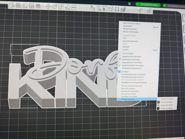 Wechsle das Filament auf die Farbe, die du für den unteren Bereich, in diesem Fall die Blockbuchstaben KIND, haben möchtest.