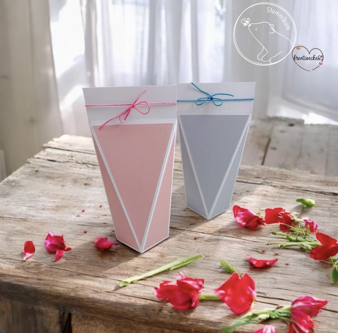 Mit dieser Schneidedatei erhältst du eine tolle Box, die sich perfekt eignet für kleine Mitbringsel. Durch die Form „schließt“ sie oben selbst und du kannst sie noch nach Belieben verzieren. Zusätzlich beinhaltet die Datei 6 hochauflösende DigiPapiere (JPG in 30,5 x 30,5 cm), mit denen du deine Boxen noch gestalten kannst.
