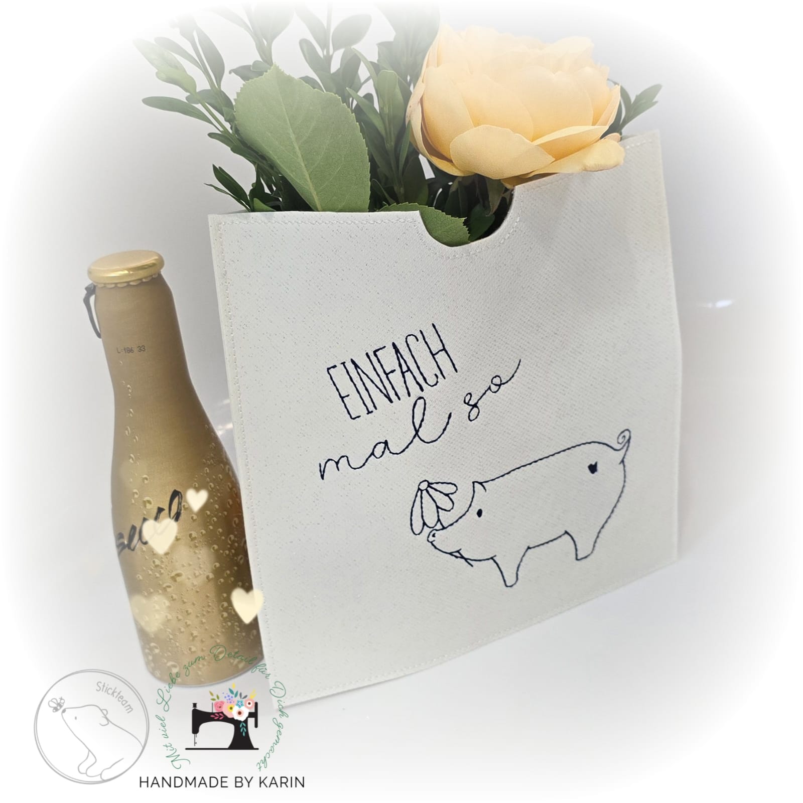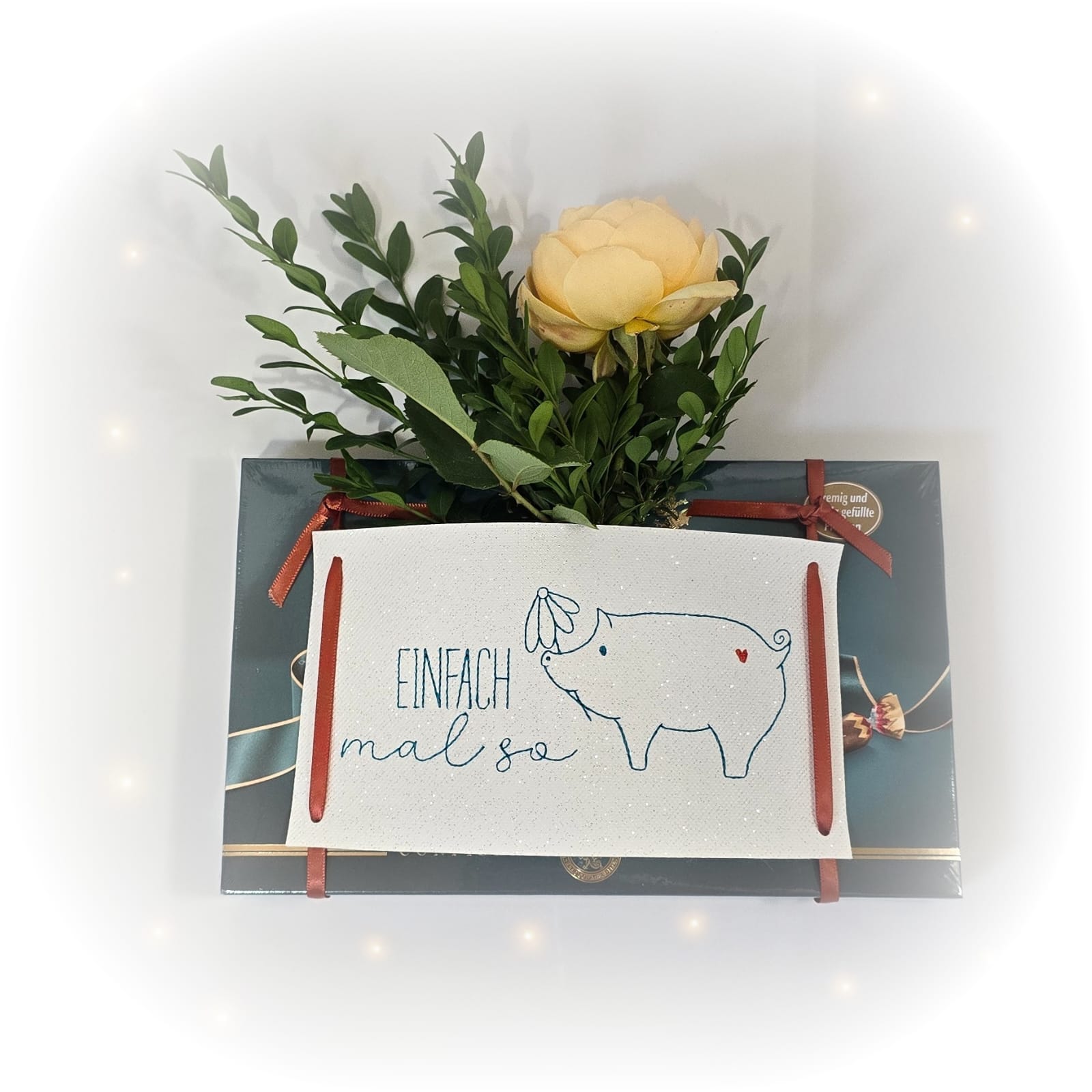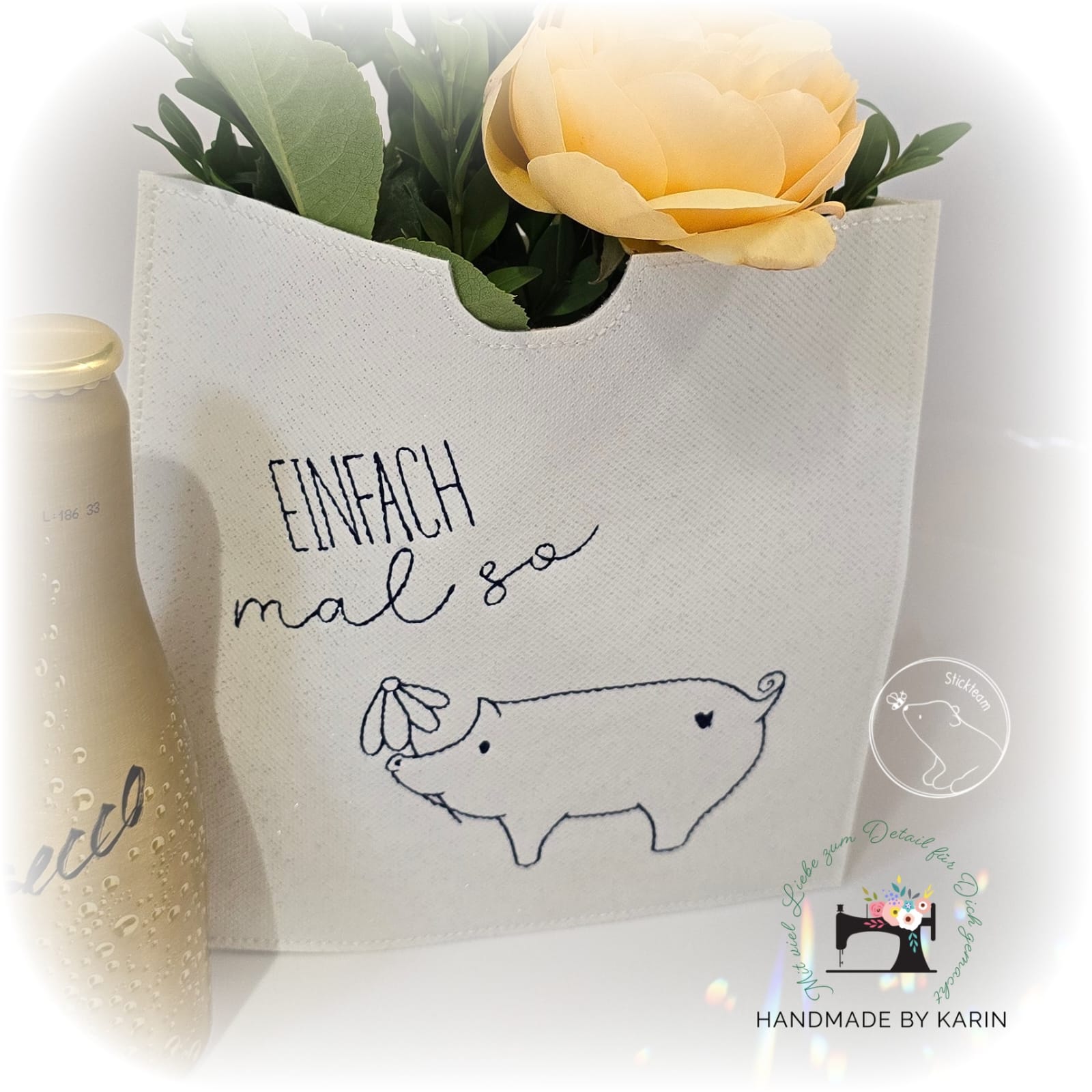 Unser süßes Schweinchen aus der Plotterdatei Blümchen für dich nun auch als Maschinenstickdatei.