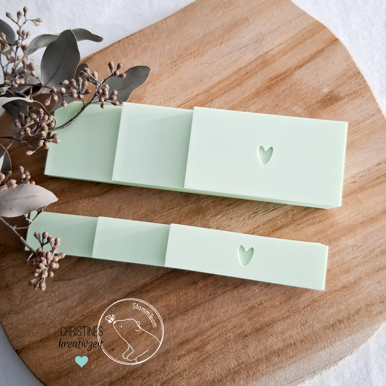 Mit dieser STL-Datei kannst dir praktische Klötzchen drucken, die du auch mit den bekannten Holzklötzchen kombinieren kannst. Drucke dir z.B. für unsere Bank 2 damit die passende Sitzfläche in deiner Lieblingsfarbe. Die Klötzchen haben die Maße 22 x 8 x 80/120/160 und 44 x 8 x 80/120/160 und sind einmal als Blanko-Klötzchen, einmal mit Herz als Ausschnitt und einmal mit Herz als Gravur enthalten, insgesamt sind es damit 18 Varianten.