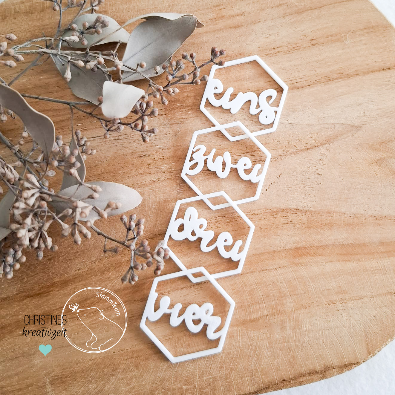 STL-DATEI Adventskalenderzahlen 1-4 Lettering Hexagon