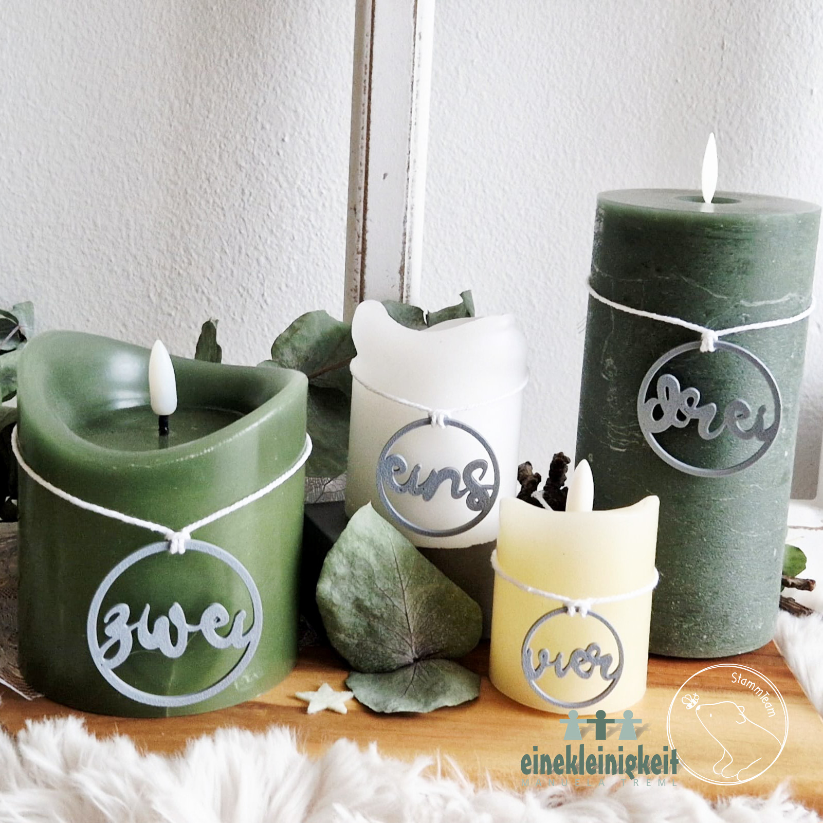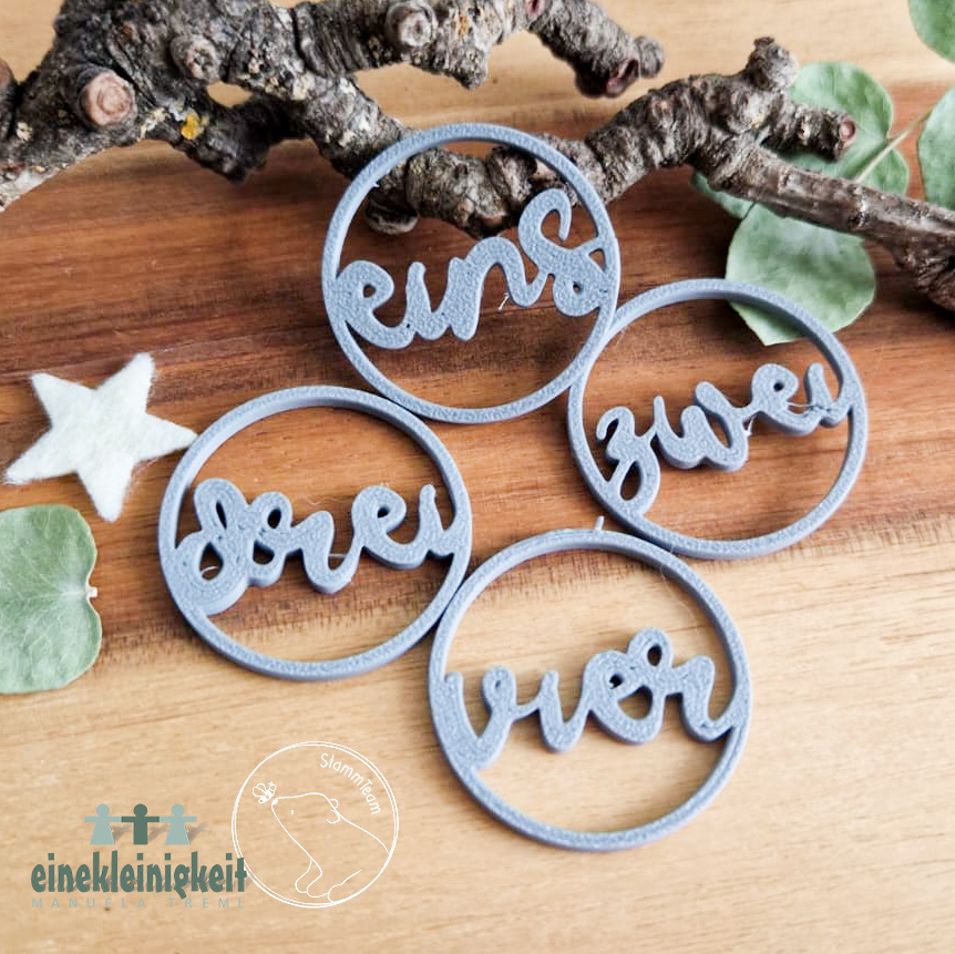 Mit dieser STL-Datei kannst dir unsere tollen Lettering-Adventskalenderzahlen von 1-4 für deinen Adventskranz drucken. Bitte beachte, dass ECHTE Kerzen/Feuer und PLA keine gute Kombination ist und du die Adventskalenderzahlen nur als Deko nutzen solltest.