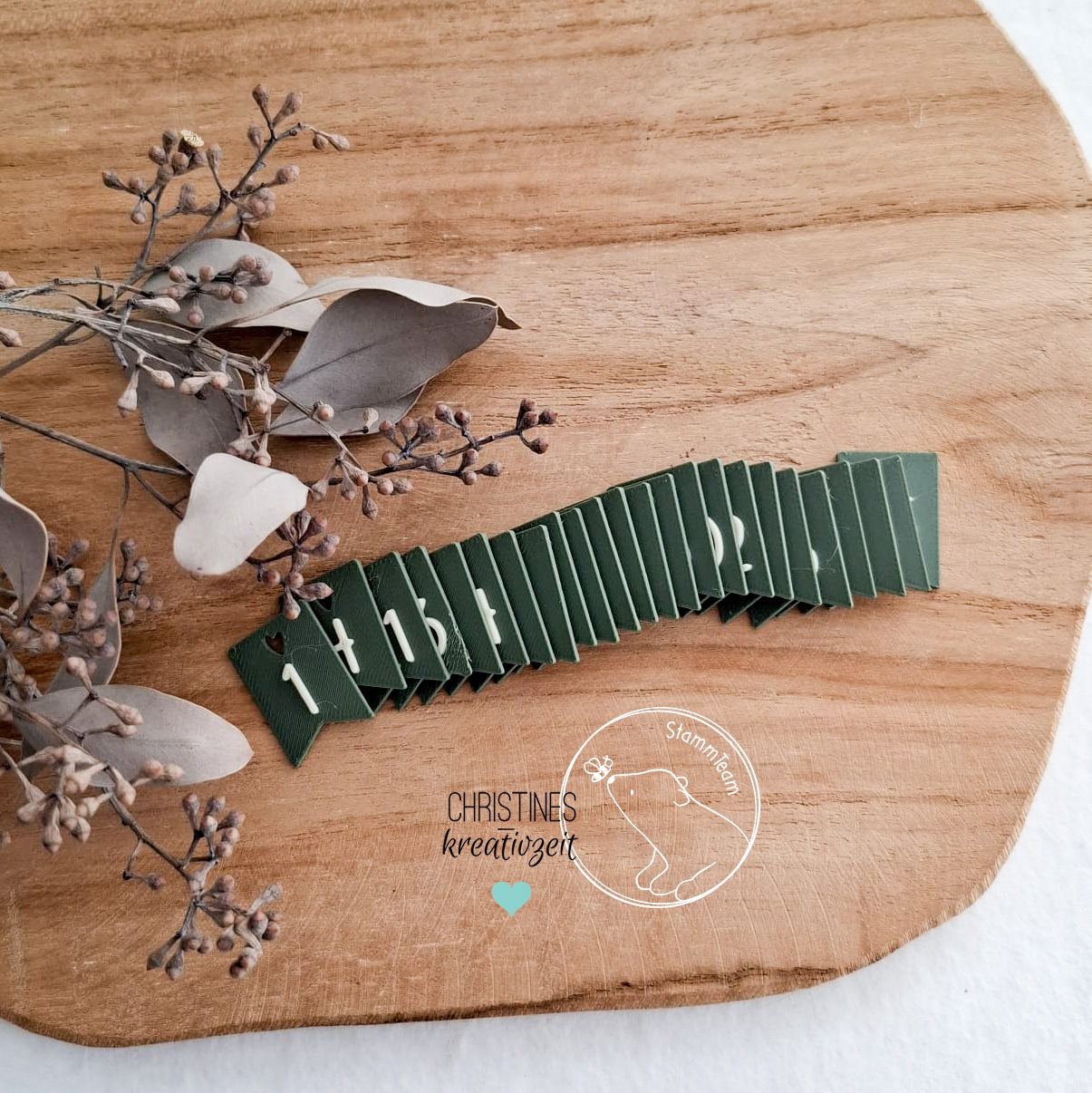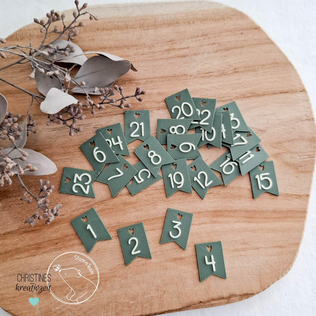 Mit dieser STL-Datei kannst dir unsere hübschen Adventskalenderzahlen für deinen Adventskalender drucken.