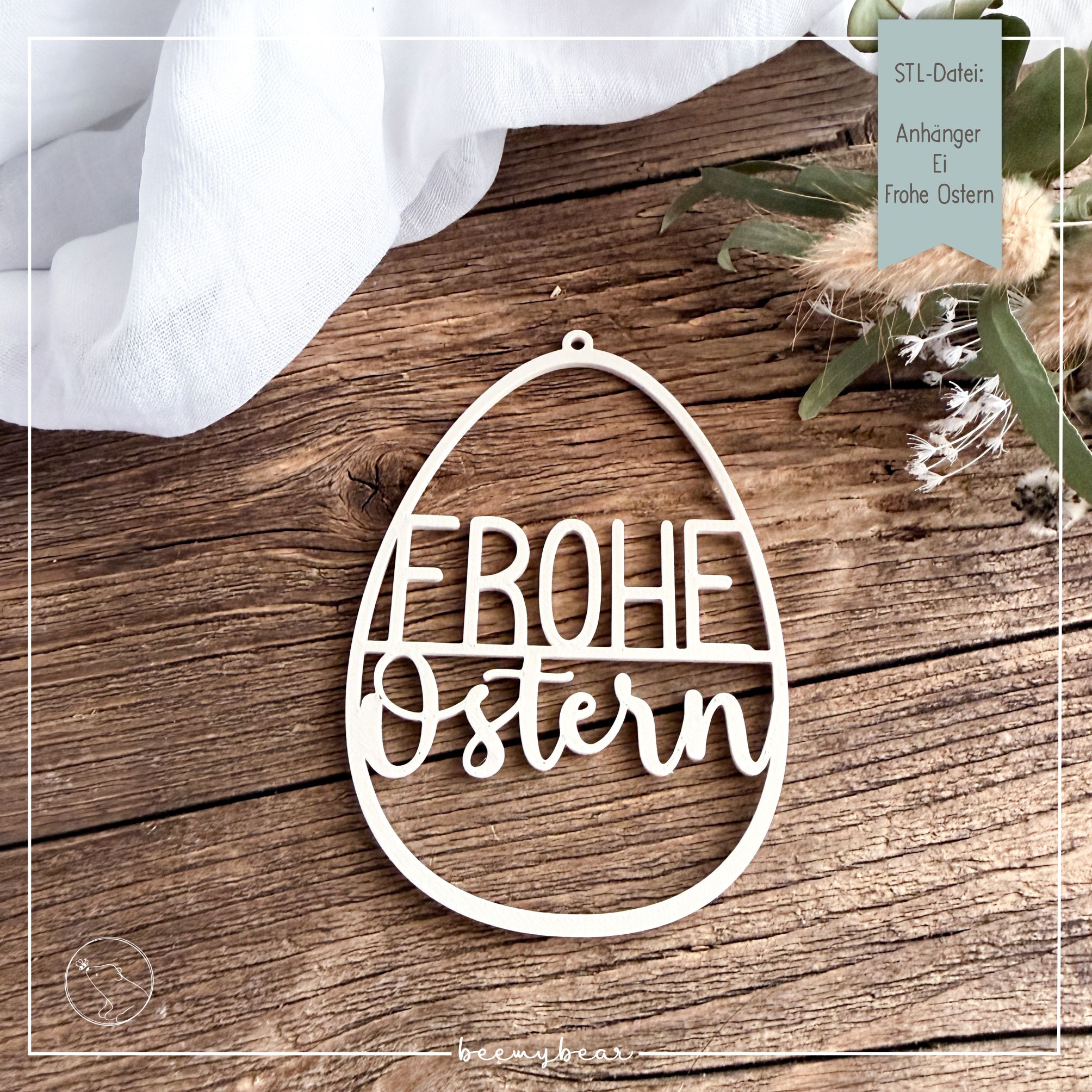 Mit dieser STL-Datei kannst dir diesen süßen Anhänger aus meiner Laserdatei Anhänger Frohe Ostern drucken.