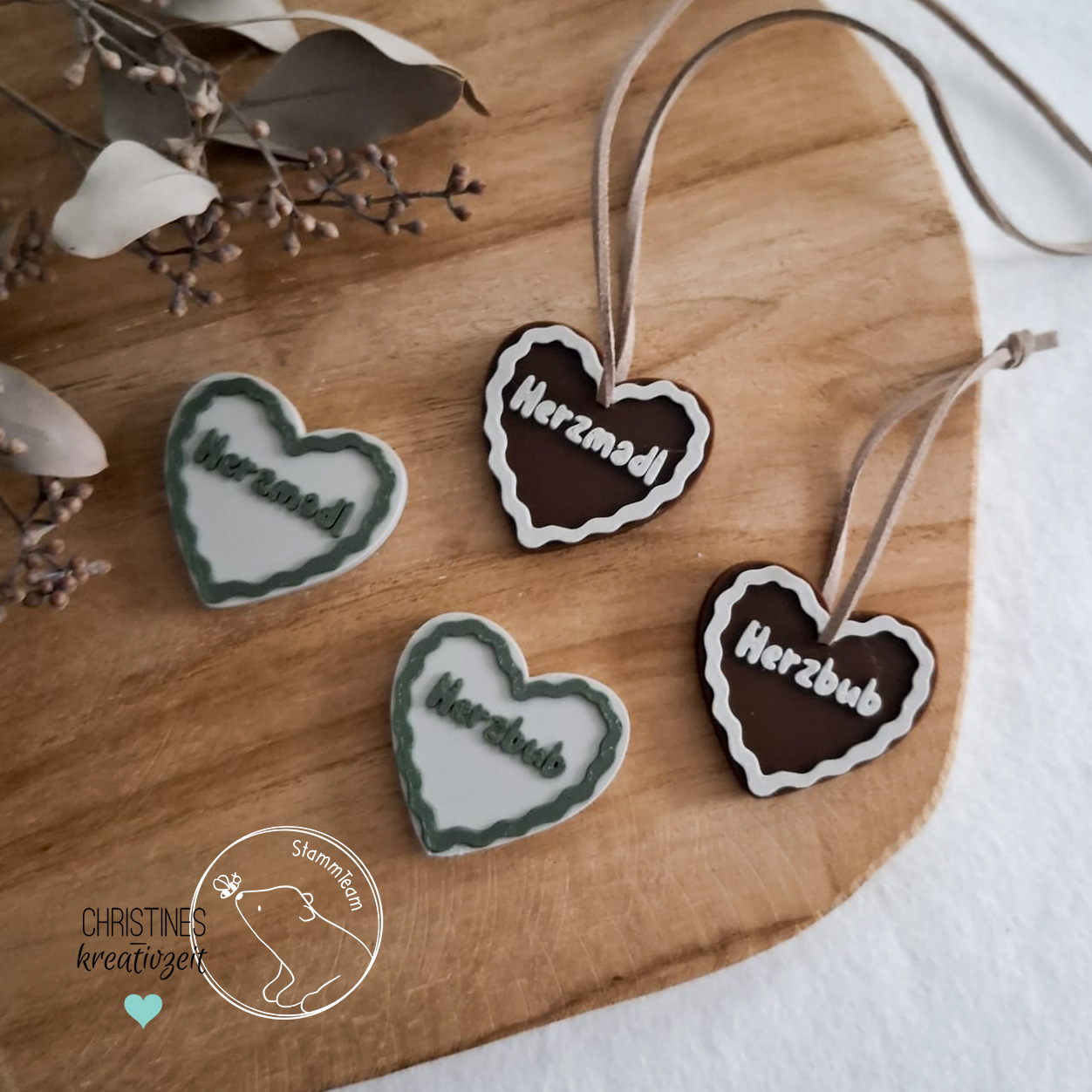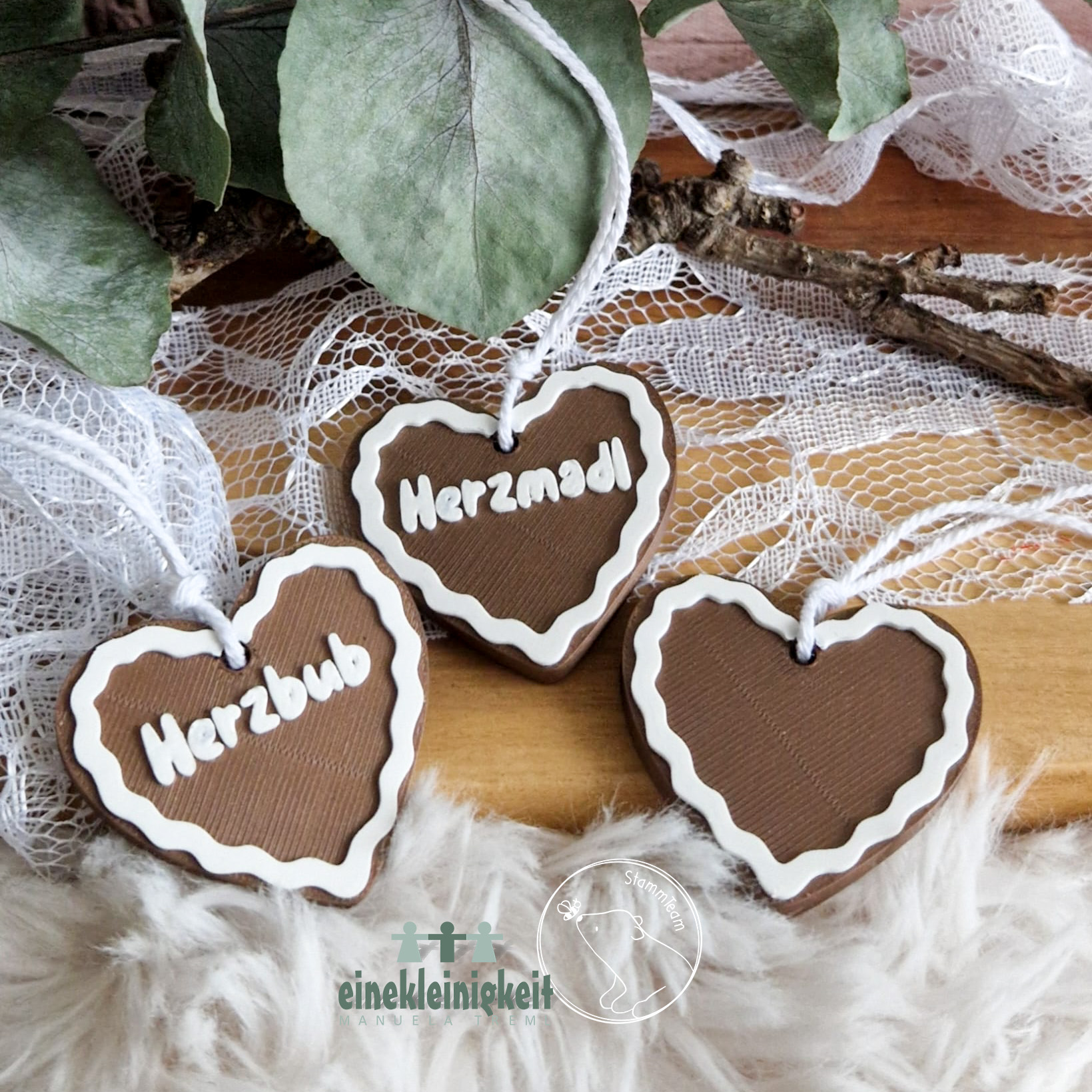 Mit dieser STL-Datei kannst dir süße Lebkuchenherzen als Anhänger drucken. Die Herzen kommen in mehreren Varianten, blanko und mit der Aufschrift Herzmadl/Herzbub, mit Löchern für z.B. Schlüsselringe in 2 Größen und auch eine Variante ohne Loch, wenn du das Herz z.B. aufkleben möchtest.