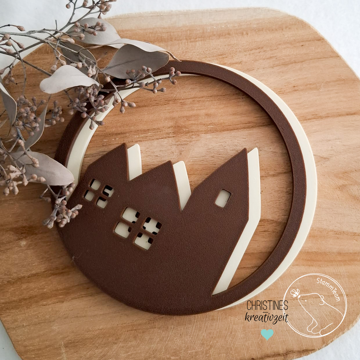 Mit dieser STL-Datei kannst dir unseren hübschen Loop Skandi Häuschen (Kreis) aus der Datei Skandinavische Weihnacht als hübschen Deko-Anhänger drucken.