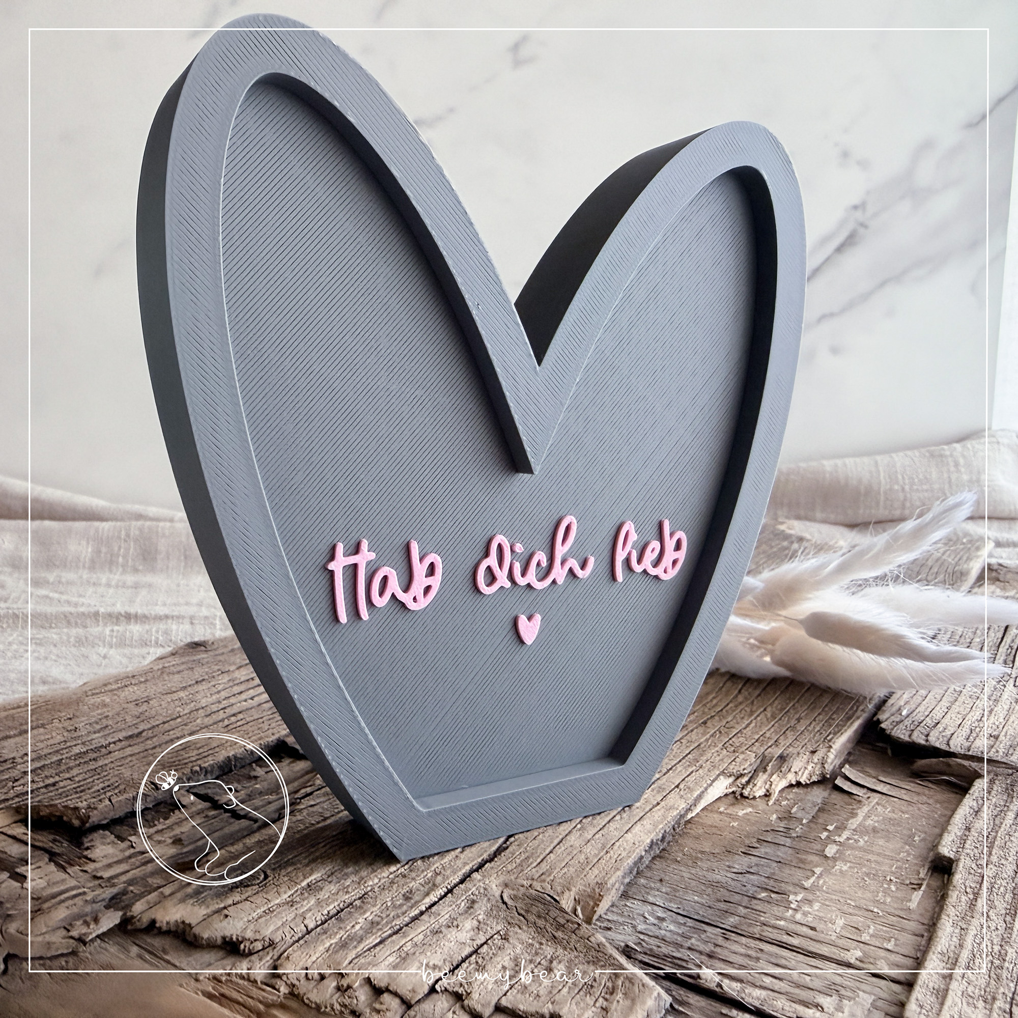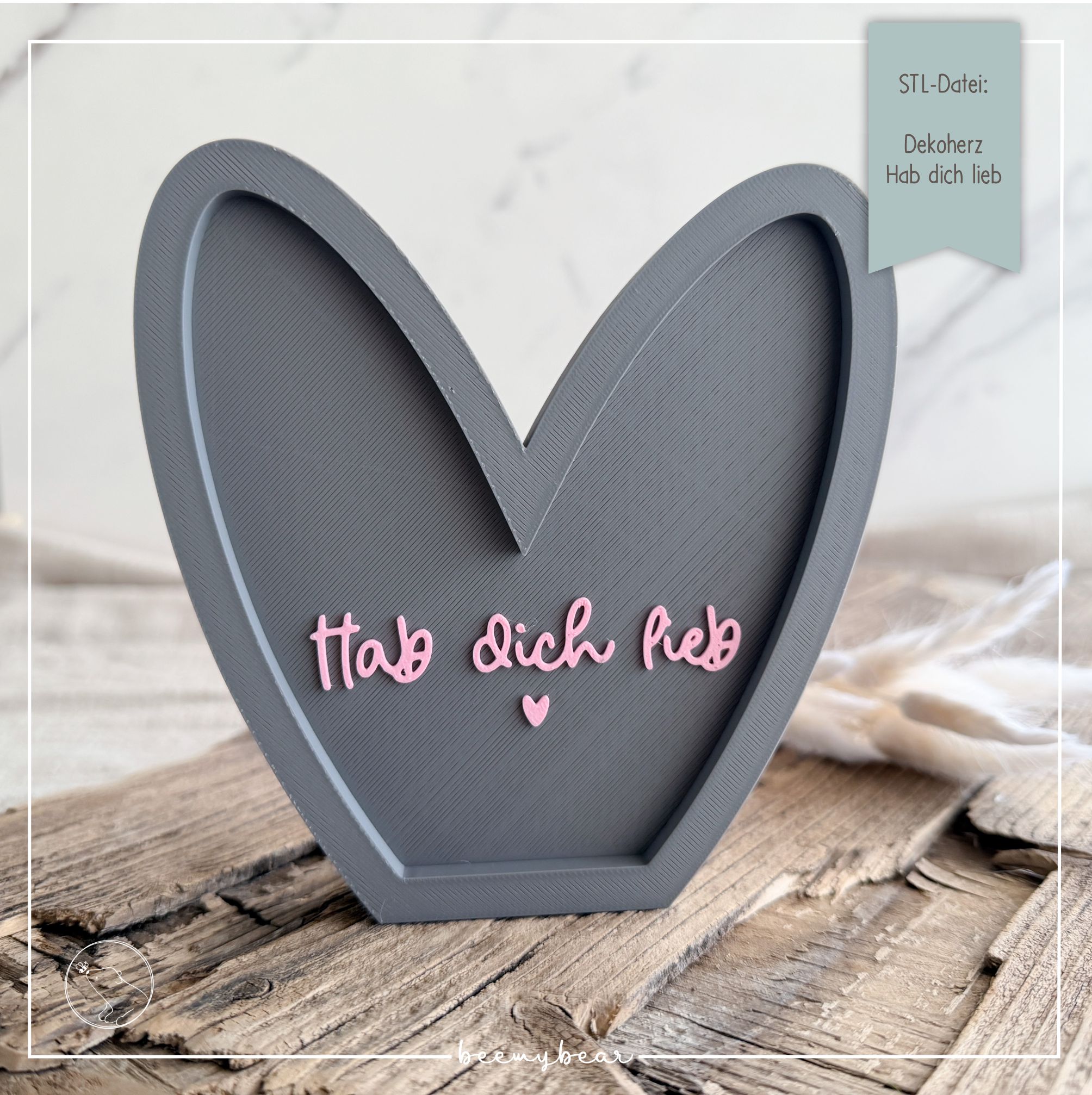 Mit dieser STL-Datei kannst du dir ein süßes Dekoherz zum Hinstellen mit der Aufschrift „Hab dich lieb“ drucken, ein wundervolles Geschenk für deine Liebsten.