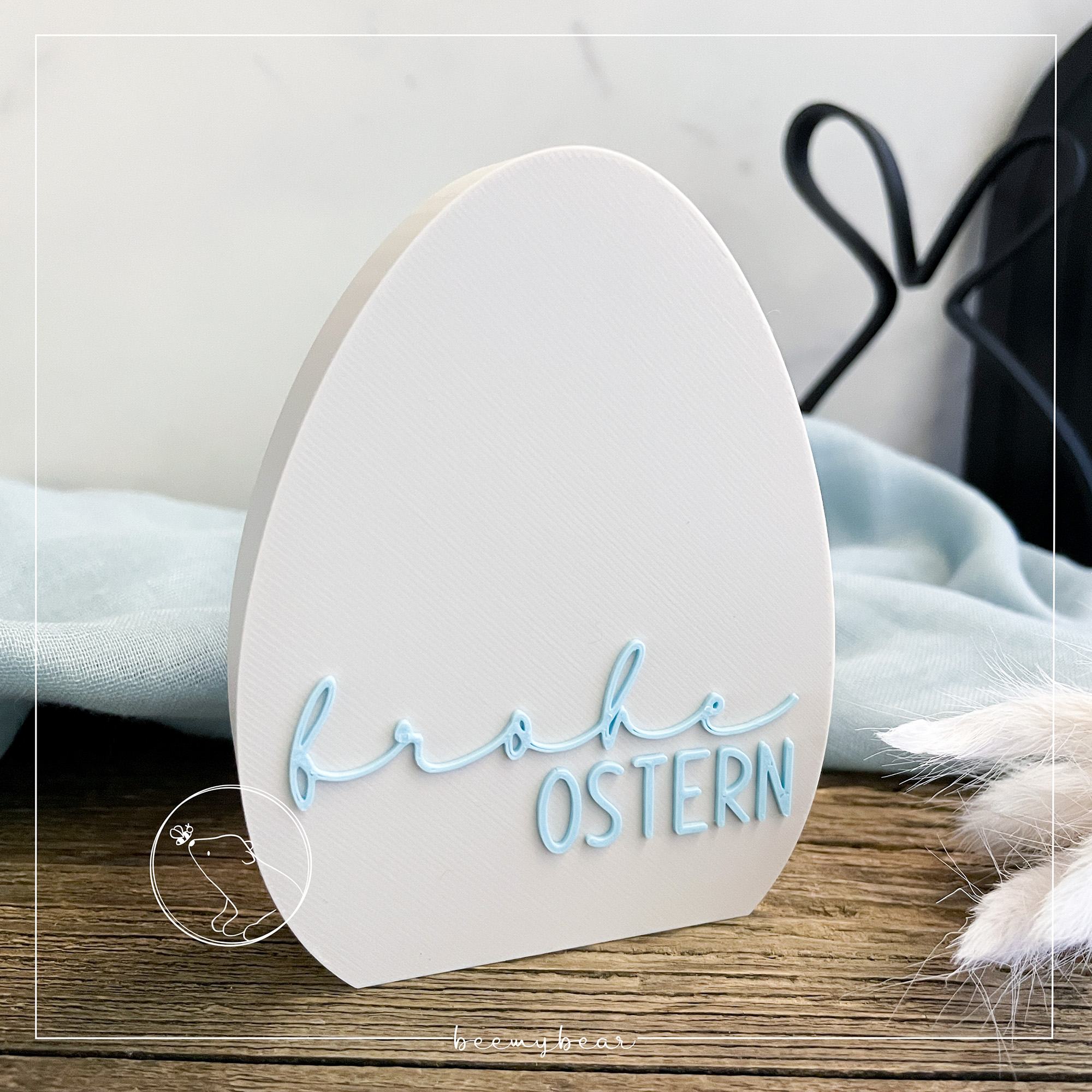 Mit dieser STL-Datei kannst dir dieses stehende Ei mit dem Spruch „Frohe Ostern“ drucken, ein hübscher Hingucker in deinem Zuhause oder tolles Geschenk.