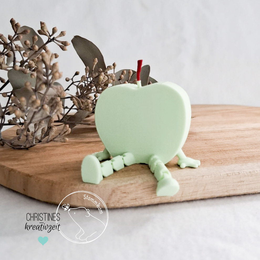 Du erhältst diesen süßen Apfel mit Wackelbeinchen und Armen. In unseren Tests konnten wir ihn problemlos bis zur Hälfte verkleinern, so dass du dir eine ganze Bande in vielen unterschiedlichen Größen drucken kannst.