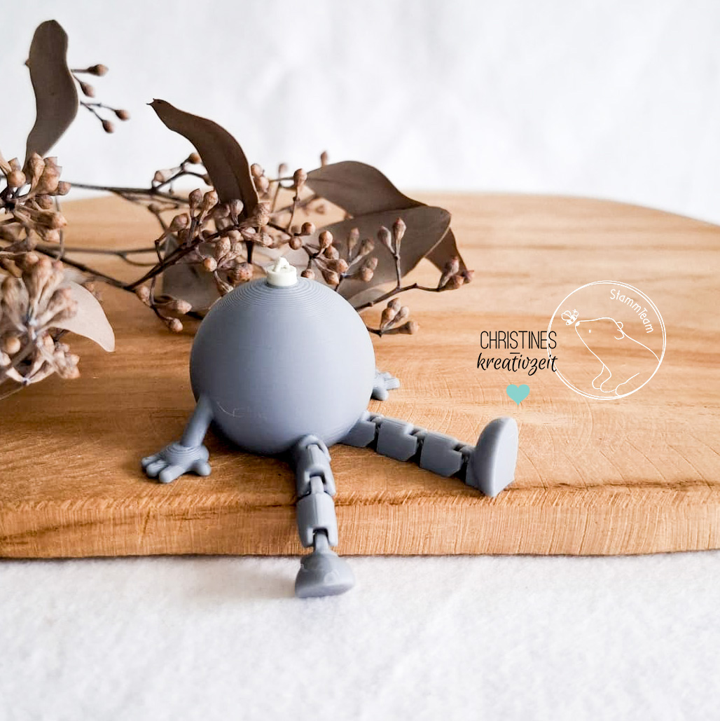 Du erhältst diese süße Weihnachtskugel mit Wackelbeinchen und Armen. In unseren Tests konnten wir ihn problemlos bis zur Hälfte verkleinern, so dass du dir eine ganze Bande in vielen unterschiedlichen Größen drucken kannst.