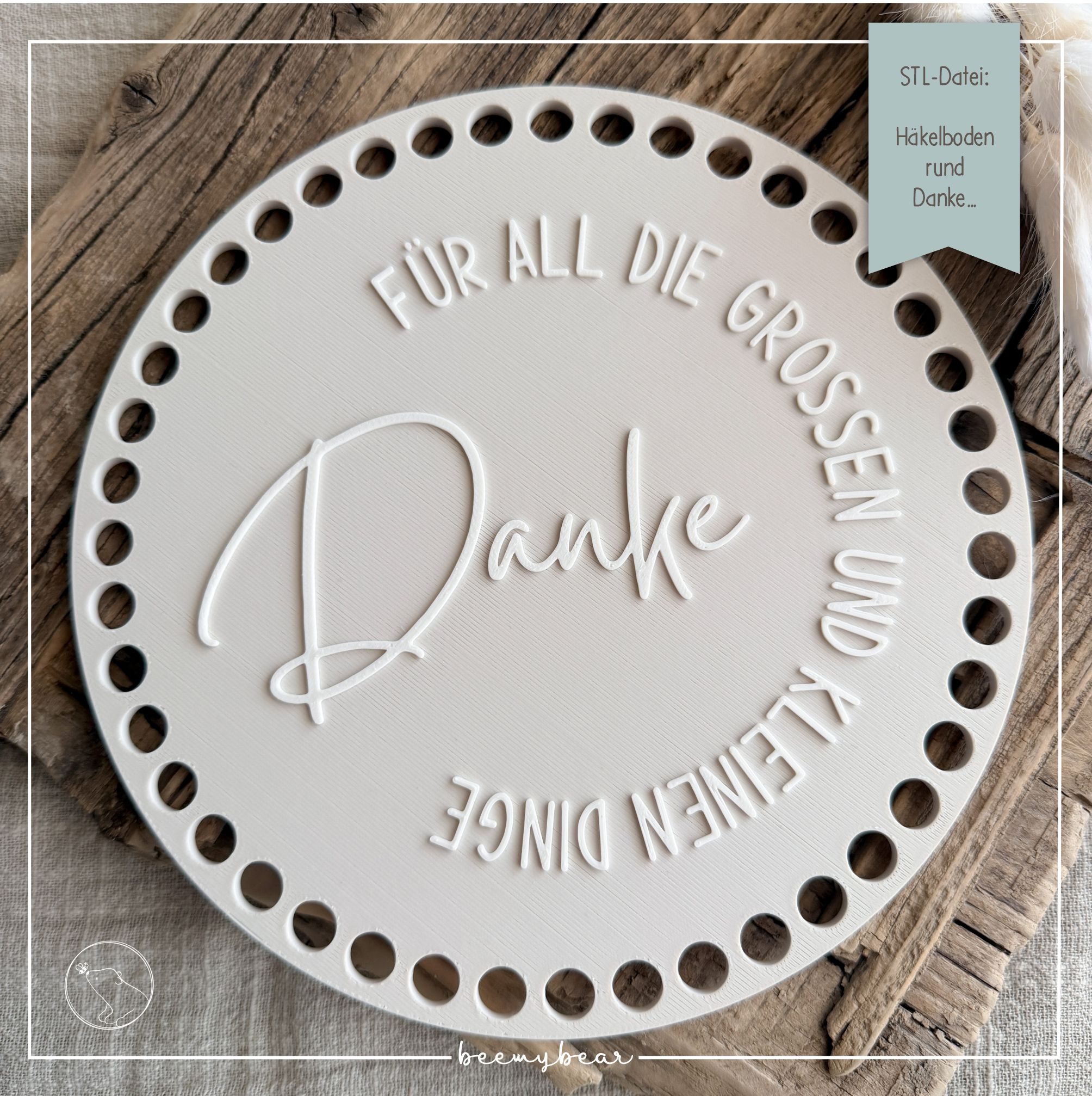 STL-DATEI HÄKELBODEN rund Danke