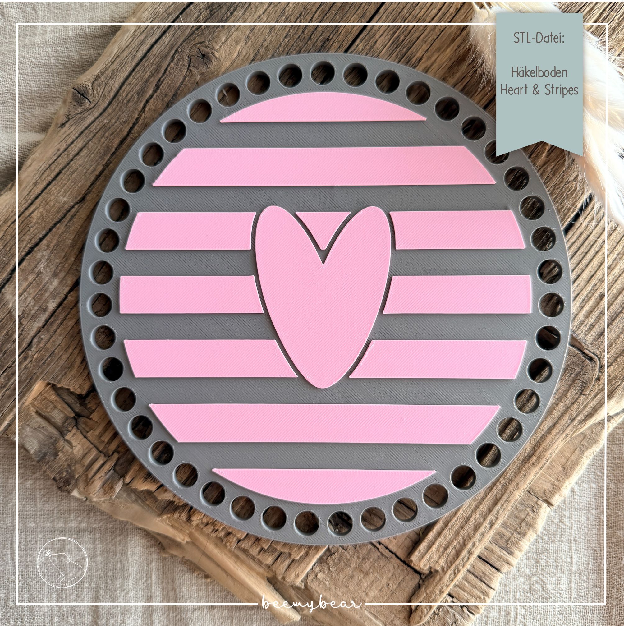 STL-DATEI HÄKELBODEN rund Heart & Stripes 1
