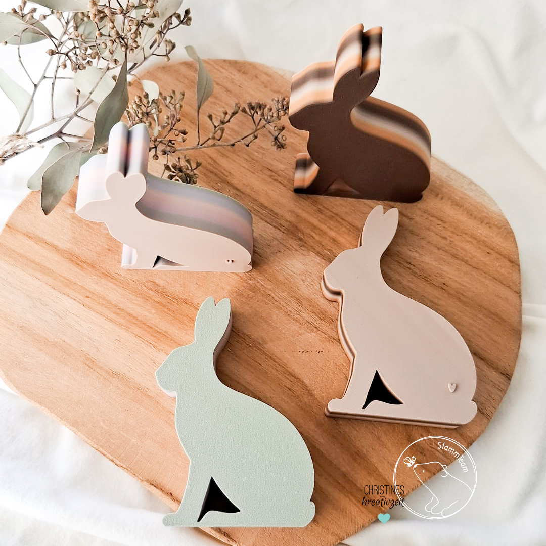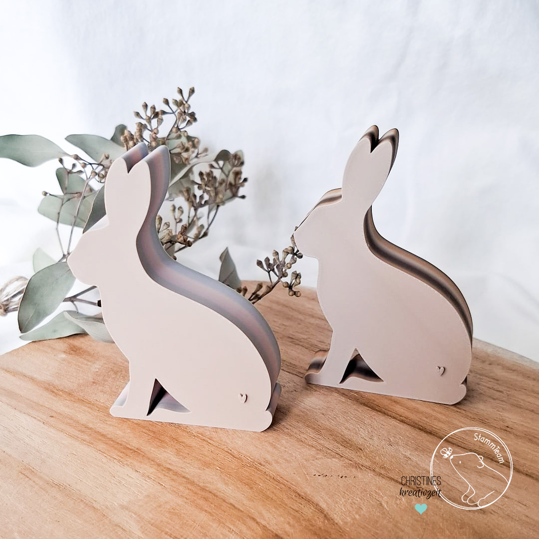 Mit dieser STL-Datei kannst dir unseren zuckersüßen Hasen aus der Datei Osterhasengrüße drucken. Der Hase ist einmal mit Herzchen und einmal ohne Herzchen in der Datei enthalten. Für Klötzchen findest du ihn übrigens hier.