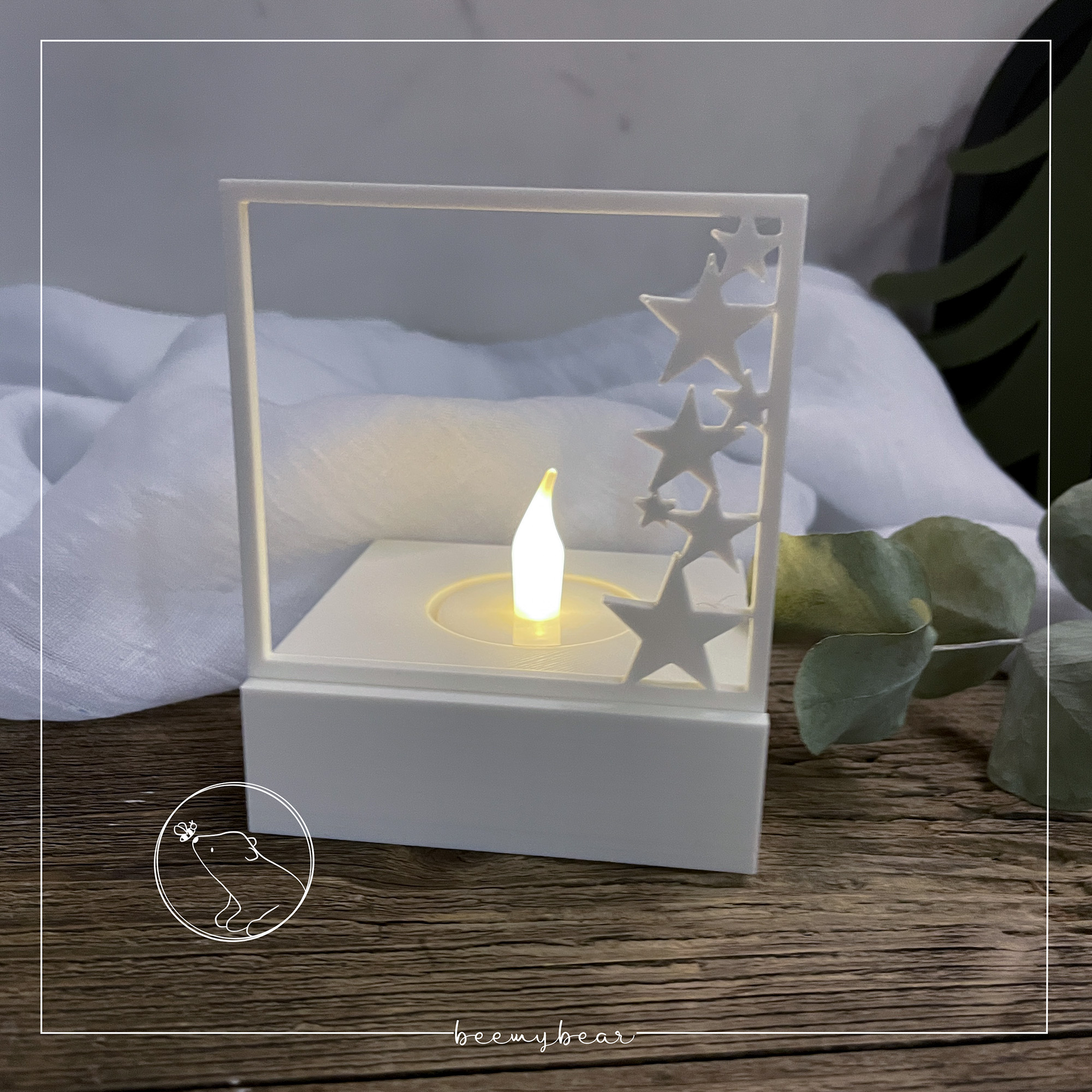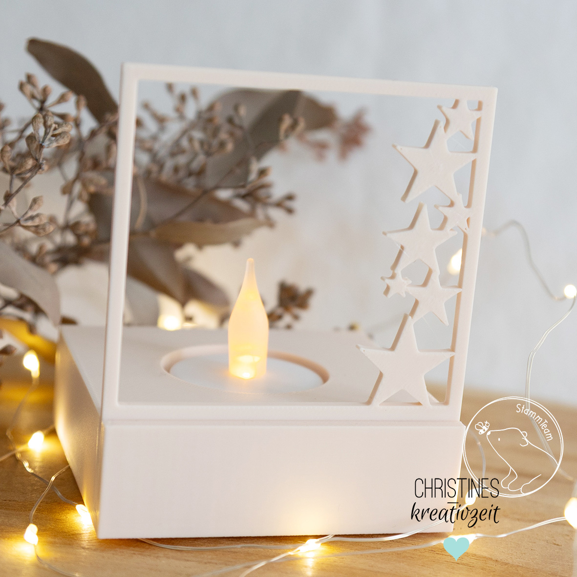 Mit dieser STL-Datei kannst dir diesen Teelichthalter drucken. Das Motiv wird eingeschoben, so dass du es nach Wunsch immer wechseln kannst.
