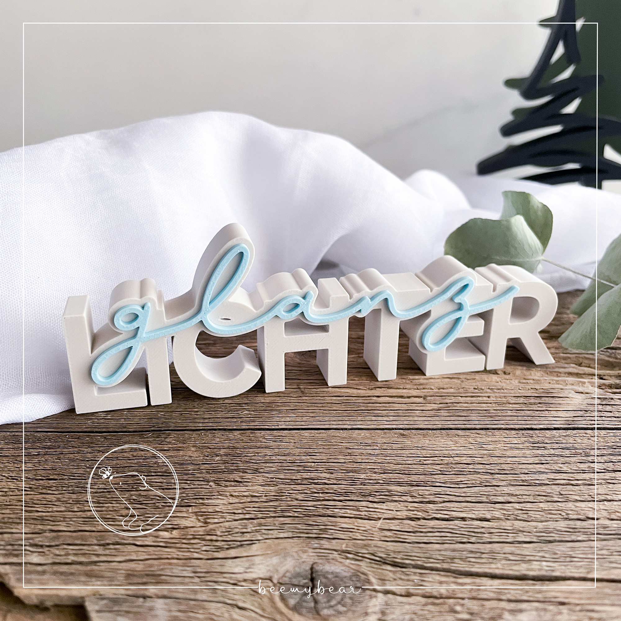 Mit dieser STL-Datei kannst du dir den Schriftzug „Lichterglanz“ drucken. Die filigrane Schrift kannst du dir in deinem Slicer anders einfärben, so dass ein zauberhafter Effekt entsteht. Ein toller Hingucker oder süßes Mitbringsel.