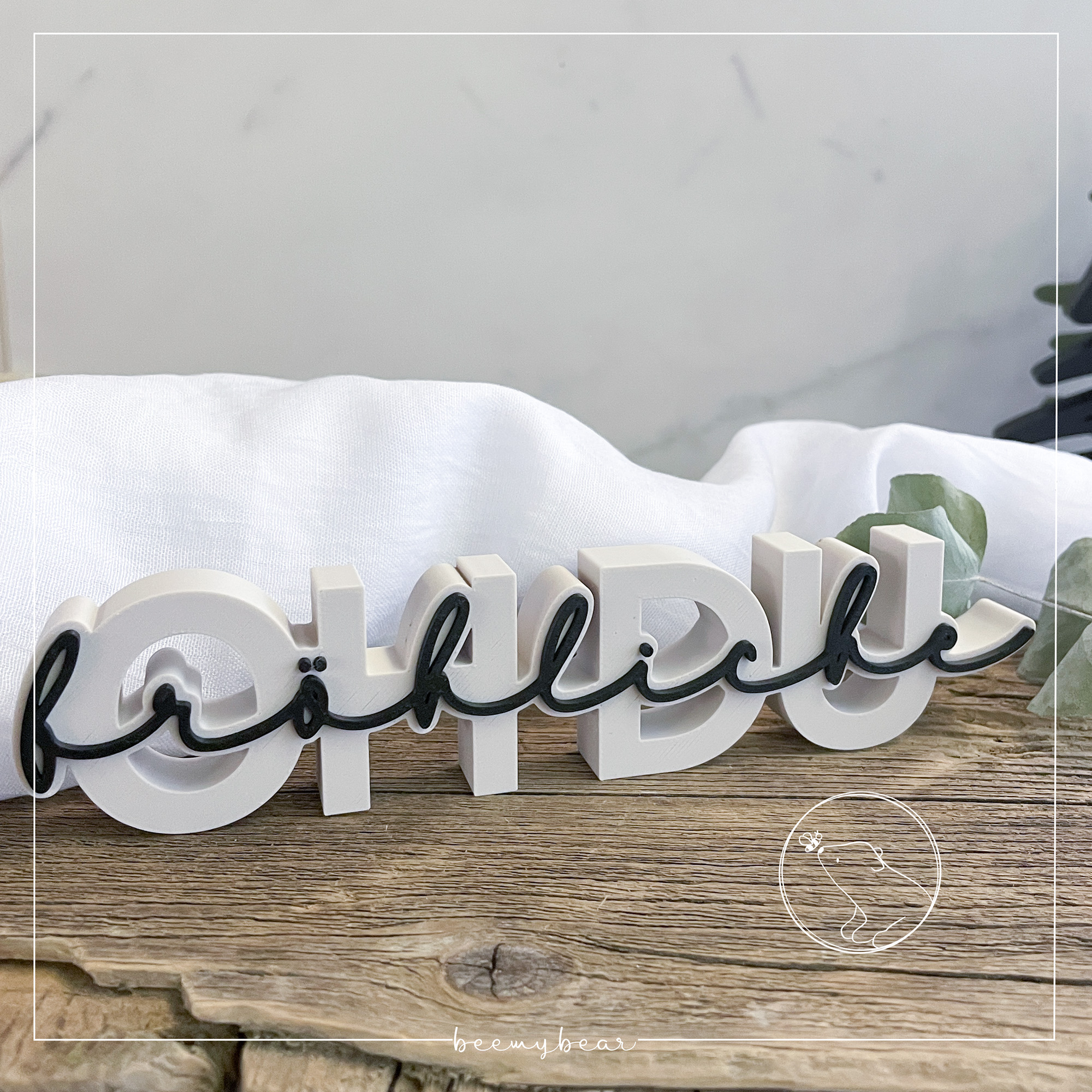 Mit dieser STL-Datei kannst du dir den Schriftzug „Oh du fröhliche“ drucken. Die filigrane Schrift kannst du dir in deinem Slicer anders einfärben, so dass ein zauberhafter Effekt entsteht. Ein toller Hingucker oder süßes Mitbringsel.