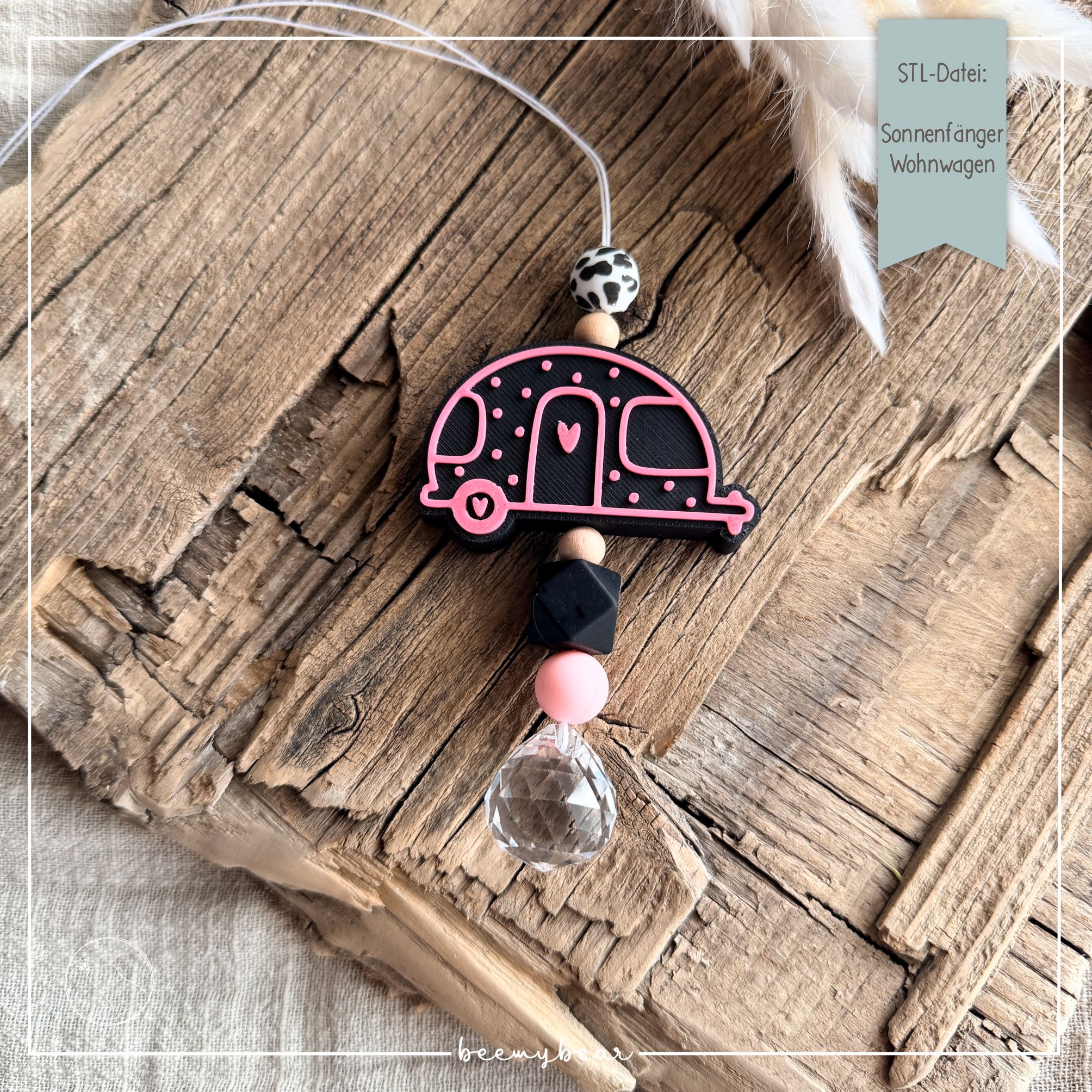 Mit dieser STL-Datei kannst dir meinen hübschen Wohnwagen aus der Plotterdatei Travel drucken, der sich perfekt eignet, um damit deine Sonnenfänger aufzuhübschen. Meine zweifarbigen Sonnenfänger-Motive sind auf der Rückseite glatt, anders als meine Sonnenfänger mit Gravur.  Du kannst dir die obere Schicht farbig in deinem Slicer einfärben, für einen besonderen Effekt. Ein entsprechendes Tutorial findest du im KreativWiki. Passende Kristalle findest du in unserem Amazon-Store (Link in der Sidebar).