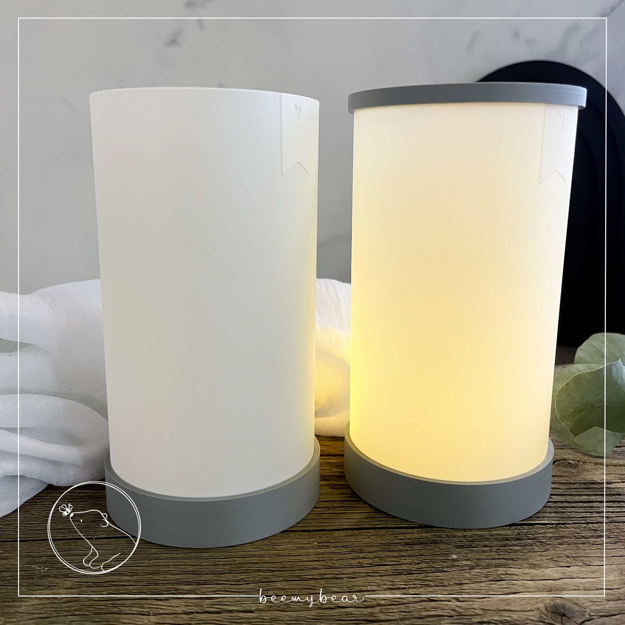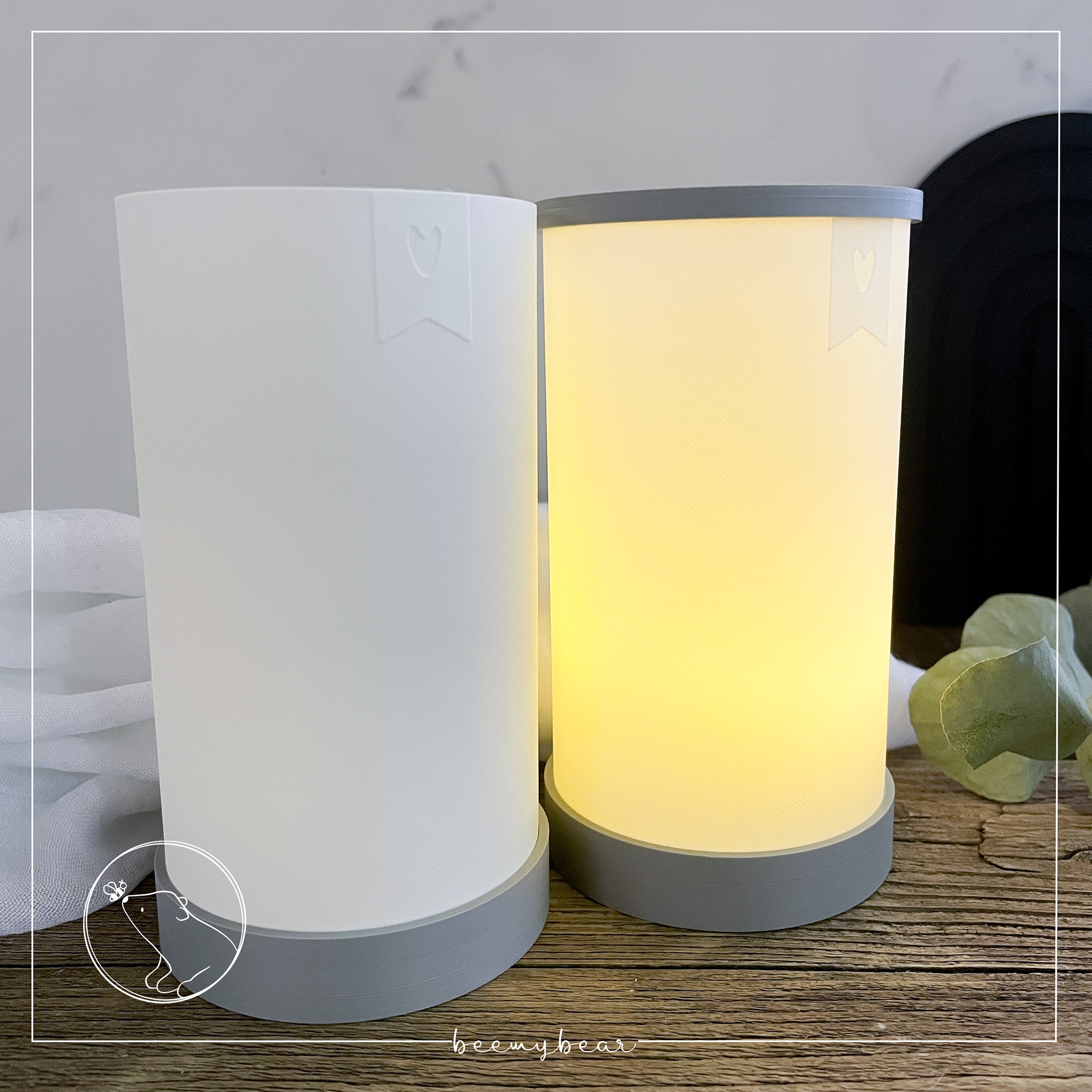 Die Windlichter sind, ohne Sockel, ca. 12 cm hoch und haben ein Durchmesser von ca. 7 cm und können super mit einem Plott oder EasyRub individuell verziert werden. Bitte beachte, dass sie NICHT mit dem A1 Mini gedruckt werden können.
